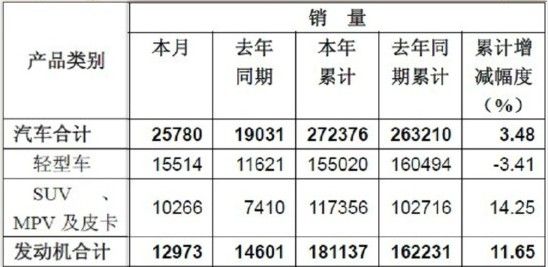 東風汽車股份有限公司2013年12月份公司主營產品產銷數(shù)據(jù)顯示:產車18793輛,全年累計產車258085輛,同比下降2.25%。12月銷車25780輛,2013年累計銷售272376輛,同比增長3.48%,