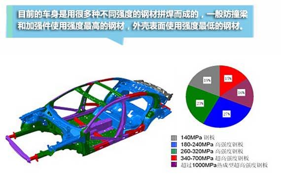 因此,在看廠商宣傳資料時看到“我們的車身采用了1000Mp級別高強度鋼制造”這種宣傳語時不要誤以為全車都是用這種鋼造的,實際上可能只有四門防撞梁那幾根桿達到了這個強度級別。