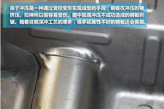 材料強度上去了帶來的問題是難以加工。一般轎車都是采用沖壓的方法制造,即用模具擠壓材料成型,類似于玩培樂多彩泥?,F(xiàn)在車用鋼板強度高了就對沖壓工藝要求更高,而且現(xiàn)在深沖部件很多,材料容易出現(xiàn)裂紋和折皺。