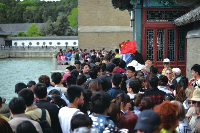 多么大的世界記錄停車場啊。各大景點車堵人堵。