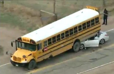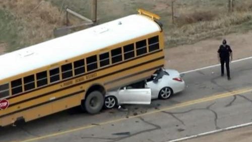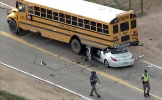 這張圖可以看到,豐田小轎車幾乎整個鉆到了美式校車車底下,將美式校車尾部頂起來了。小轎車幾乎被摧毀,但是校車卻毫發(fā)無傷,甚至連外殼都只有很小的變形。這是因為美式校車的底盤都比較高,離地間隙高。而且厚重,防撞鋼梁都非常規(guī)整結(jié)實。起到保護車內(nèi)乘客在受到撞擊的時候不會受到太大傷害。