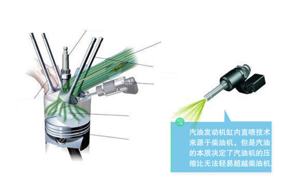 如今缸內(nèi)直噴汽油發(fā)動(dòng)機(jī)越來(lái)越普遍,這也是根據(jù)柴油機(jī)的直噴設(shè)計(jì)而來(lái),但是對(duì)于相同排量發(fā)動(dòng)機(jī)來(lái)說(shuō),缸內(nèi)直噴的汽油機(jī)的動(dòng)力性不占優(yōu)勢(shì),因?yàn)槠桶l(fā)動(dòng)機(jī)本身特點(diǎn)制約了壓縮比,所以無(wú)論如何汽油機(jī)都無(wú)法實(shí)現(xiàn)柴油機(jī)的低轉(zhuǎn)速大扭矩的特點(diǎn)。而且汽油直噴沒(méi)有油壓傳感器,油壓不能閉環(huán)反饋也就無(wú)法達(dá)到進(jìn)一步控制燃燒的效果。