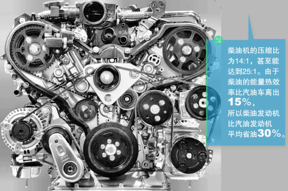而柴油機(jī)這方面具有先天的優(yōu)勢(shì),柴油機(jī)直接壓縮空氣,因此壓縮比可比汽油機(jī)高出許多。汽油機(jī)的壓縮比為8:1至12:1,而柴油機(jī)的壓縮比為14:1,甚至能達(dá)到25:1。由于柴油機(jī)具有更高的壓縮比,因此效率也更高也不是一般的省油,由于柴油的能量熱效率比汽油車(chē)高出15%,所以柴油發(fā)動(dòng)機(jī)比汽油發(fā)動(dòng)機(jī)平均省油30%。