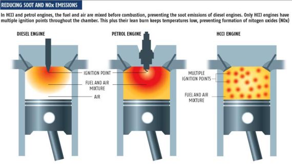 答案當(dāng)然是NO,HCCI發(fā)動(dòng)機(jī)這一種不倫不類的產(chǎn)物真的很奇怪,HCCI發(fā)動(dòng)機(jī)使用汽油燃料,但是則使用壓燃的方式點(diǎn)火,通過(guò)活塞壓縮混合氣使之溫度升高至一定程度時(shí)自行燃燒。