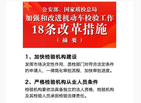 附:公安部、國家質(zhì)檢總局加強(qiáng)和改進(jìn)機(jī)動車檢驗(yàn)工作18條改革措施(摘要)