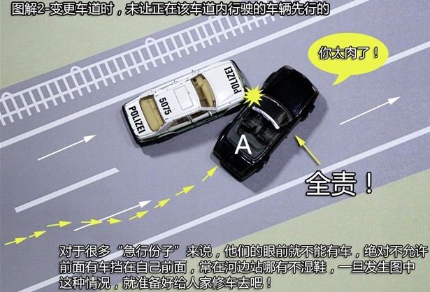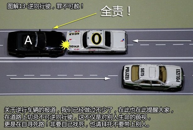 在日常行駛中,我們很多人都會有過因為貪圖一時省事,帶著僥幸心理違法行車的情況,比如逆行、違規(guī)超車等等,雖然幾經報道,但還是有很多人并不了解這其中的責任,今天我們借此事件來和大家聊聊關于車輛全責事故的那些事兒,希望可以因此警醒很多一直心存僥幸的駕駛者。為了便于大家閱讀,圖例中所示的全責方均以A車為準,另一方為無責方。