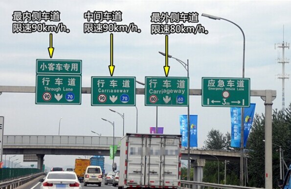 以北京的機(jī)場高速和五環(huán)路為例,機(jī)場高速最內(nèi)側(cè)車道的最高限速為120km/h,而最外側(cè)車道則是90km/h;同樣北京的五環(huán)路也是實(shí)行分道限速,中間車道和最內(nèi)側(cè)車道最高限速為90km/h,最外側(cè)車道為80km/h。所以大家開車行駛在高速路或城市快速路上時,一定要仔細(xì)觀察限速標(biāo)識,避免被罰。