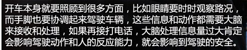 據(jù)統(tǒng)計(jì)部門稱,目前有7成左右的交通事故皆因某一方駕駛員分神而導(dǎo)致。在開車時(shí)使用手機(jī)的司機(jī)剎車反應(yīng)速度要慢19%,尤其是當(dāng)司機(jī)騰出手撥打手機(jī)或者視線偏離正前方時(shí),難以掌控方向盤以應(yīng)對轉(zhuǎn)彎或者路線變化,極易引發(fā)交通事故。此前新交規(guī)也明確:司機(jī)駕駛機(jī)動(dòng)車有撥打、接聽手持電話等妨礙安全駕駛的行為,一次記2分,處20元以上200元以下罰款。