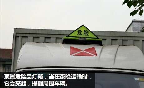 車頂導(dǎo)流罩上也應(yīng)加裝了危險運(yùn)輸車的燈箱標(biāo)識,以提醒周圍車輛,該車輛運(yùn)輸?shù)奈;锲?,小心避讓?/P>