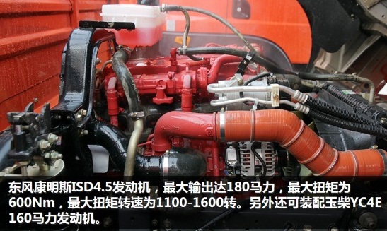 在動力方面,與其他輕卡不同,D9在大扭矩小油耗方面卓有成就。來自東風康明斯ISD和玉柴YC4E國四發(fā)動機均能為D9提供可靠動力,最大輸出分別為180和160馬力,最大扭矩分別為600Nm和550Nm。這臺車主推低速大扭矩特性,重載能力更強。東風輕型車公司為D9選裝了法士特8JS八擋變速箱,俗稱“小八檔”,傳動范圍更大,滿足復雜工況下的行車需求,與ISD和YC4E相匹配,傳動效率更高,同時也有效降低油耗。兩款發(fā)動機均采用EGR+DOC+POC技術,解決了需要添加尿素的困擾,節(jié)省時間、節(jié)省費用,更適合時效性強的物流運輸。