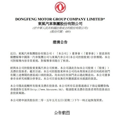 東風(fēng)發(fā)公告澄清合并謠言
