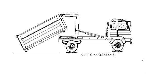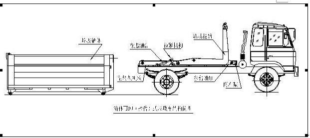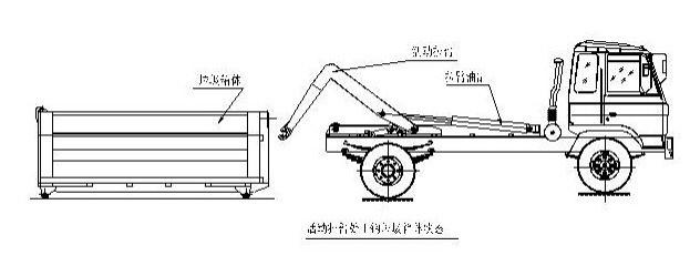該車可將地下垃圾箱內(nèi)的垃圾及垃圾箱一同拉至車上運走同時可自卸,降低了工人的勞動強度。該垃圾車的收運方式是目前世界上廣泛采用的垃圾收運方式,可以實現(xiàn)一車多箱,大大降低了配備成本和空間等等;其專用裝置的功能均以汽車發(fā)動機為動力,通過液壓機構(gòu)手動或電控來實現(xiàn)。車輛的箱體采用優(yōu)質(zhì)炭鋼板全密封焊接結(jié)構(gòu),具有強度高、重量輕、不產(chǎn)生二次污染等優(yōu)點。