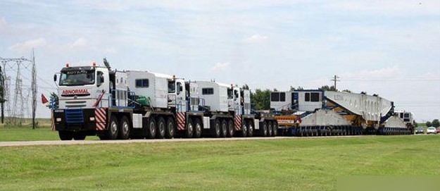 上圖這個巨無霸工程車的個頭可不小。需要蘭格后四軸,前四軸8X6牽引頭驅(qū)動,