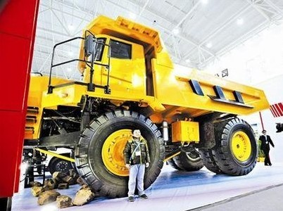 電影《變形金剛》中,霸天虎陣營中有一個巨無霸機器人“大力神”,由于身形龐大,讓汽車人頗為頭疼。昨日車展現(xiàn)場,一個尚未“變形”的大力神則讓現(xiàn)場觀眾狂呼過癮。這是由東風(十堰)特種商用車有限公司打造的一款亮黃色的礦用自卸車?!皢慰催@個輪子都比我個頭要高?!编嵪壬砀?.85米,參加工作前曾在學校校籃球隊擔任主力,但當他站到自卸車旁邊時,卻連聲嘆氣說自己矮了。“車高4.5米,車輪直徑有1.9米?!睎|風特種商用車公司主管工程師彭飛介紹,該車最大載重50噸,百公里油耗估計有90升。主要用于礦區(qū)作業(yè),市場售價約在250萬以上。