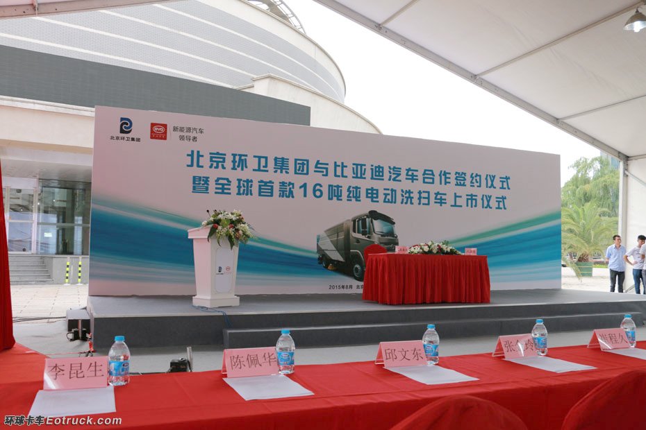比亞迪的全球電動(dòng)車(chē)戰(zhàn)略再獲新戰(zhàn)績(jī)。2015年8月6日,北京環(huán)衛(wèi)集團(tuán)與比亞迪汽車(chē)在北京會(huì)議中心舉行合作簽約儀式,雙方將聯(lián)手打造全球首個(gè)專注于純電動(dòng)環(huán)衛(wèi)領(lǐng)域的專用車(chē)公司。同時(shí),合資公司打造的全球首款16噸T8純電動(dòng)洗掃車(chē)在北京正式上市,并交付客戶進(jìn)行路面作業(yè)?;顒?dòng)現(xiàn)場(chǎng),合資公司向北京環(huán)衛(wèi)集團(tuán)第三分公司交付新車(chē)鑰匙,25輛T8純電動(dòng)洗掃車(chē)正式投入使用。
