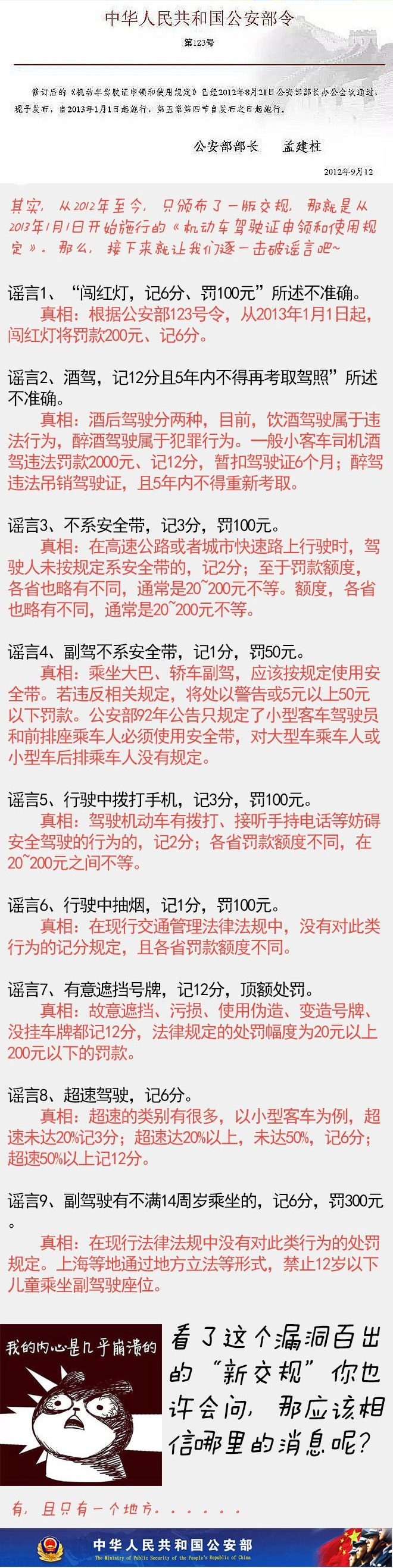 最近有網(wǎng)絡(luò)傳言說2016年1月1日中國將實施新交規(guī),后有媒體采訪當(dāng)?shù)亟痪C明是假消息。