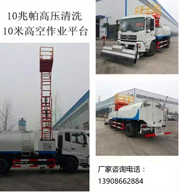 天錦道路高壓清洗車擴展車型:高壓清洗帶高空平臺,又多一項杠杠的實用功能!