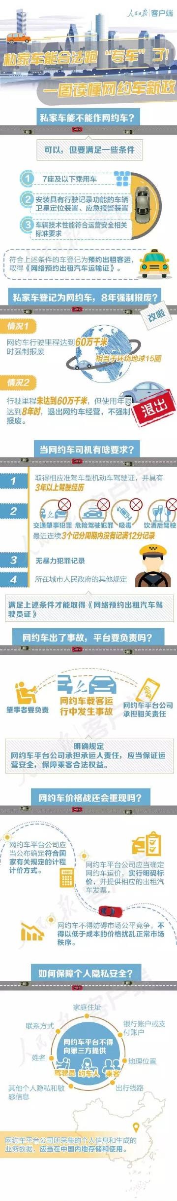 好了,基本的情況就是這樣~自從去年10月10日,交通運輸部發(fā)布了上述兩個文件的征求意見稿,到現(xiàn)在正式公布,真可謂是千呼萬喚始出來?,F(xiàn)在起,想加入的私家車趕緊去準備辦網(wǎng)絡(luò)預約出租汽車運輸證吧~以后乘客坐車也不用提心吊膽了!