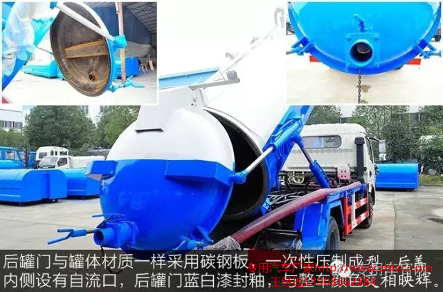 整車罐體為5cm厚的優(yōu)質(zhì)碳鋼板,罐體內(nèi)側(cè)設(shè)有兩層焊接式隔浪板,減少罐體內(nèi)部液體的波動(dòng)和沖擊,提高吸污車行駛的穩(wěn)定性。罐體內(nèi)壁還設(shè)置有自流口,用于下水道污泥抽吸,清撈,裝卸。罐體可后開(kāi),雙頂自卸。