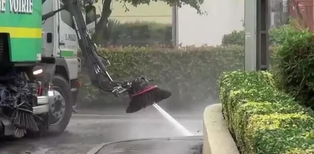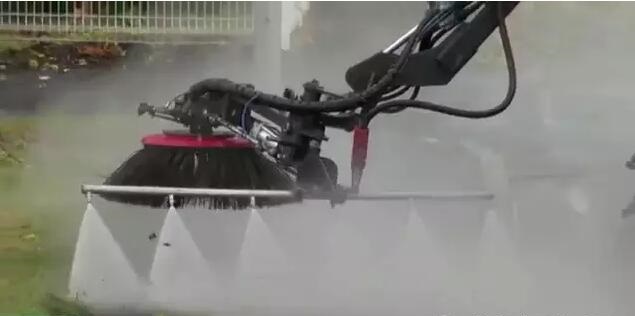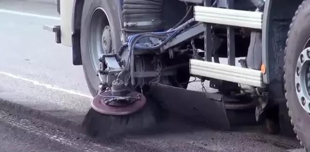 這款清掃車不僅能夠清掃平整的地面,也能清掃凹凸不平的路面。之所以能夠做到這樣,主要還是由于其有“兩把”強(qiáng)勁的刷子,而且在清掃的過程還有噴頭進(jìn)行降塵、保濕。