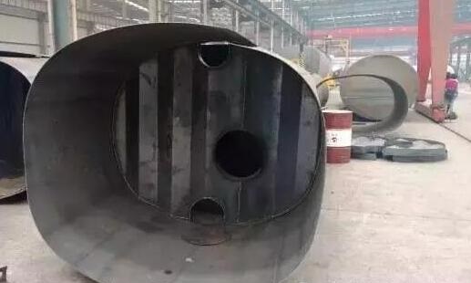 經(jīng)過開平機(jī)處理過的鋼材就可以直接進(jìn)入生產(chǎn)車間了。罐車的封頭形狀是蝶形或者是弧形的,普通的剪板機(jī)裁剪不出這樣的形狀,這時(shí)需要用到等離子切割機(jī)。等離子切割的好處就是費(fèi)時(shí)少,能夠切割出各種形狀。不過據(jù)說,在沒有等離子切割機(jī)之前,罐車的封頭全靠設(shè)計(jì)師勾勒,精細(xì)度完全無法保證,有時(shí)候光畫一個(gè)封頭就得大半天的時(shí)間。