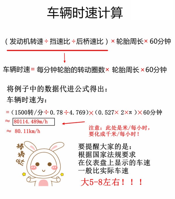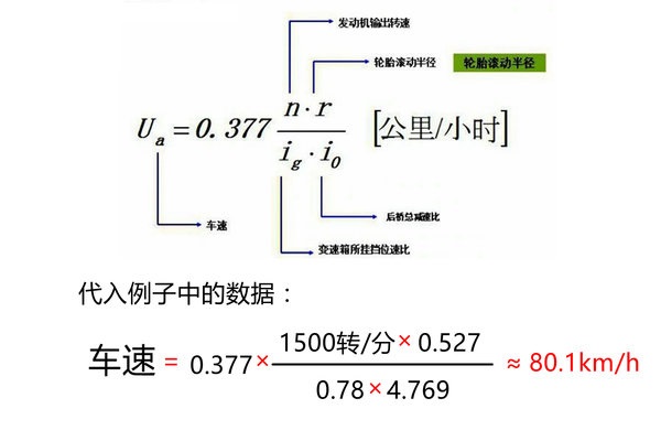 這個(gè)公式需要的數(shù)據(jù)有發(fā)動(dòng)機(jī)的轉(zhuǎn)速、輪胎滾動(dòng)半徑、變速箱速比和驅(qū)動(dòng)橋速比這四個(gè)數(shù)據(jù),計(jì)算方式也更加簡(jiǎn)單。