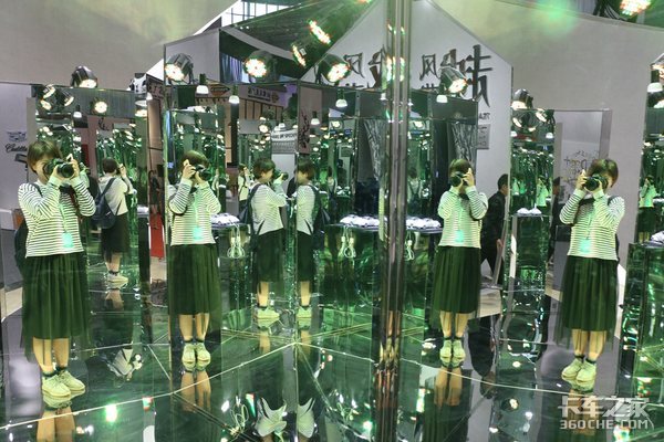 這個(gè)不用多說了,光看上面這照片就知道神奇了吧。在3號(hào)館卡車展臺(tái)的媒體區(qū),為了讓大家緊張的情緒得以放松,展內(nèi)還設(shè)了一個(gè)藝術(shù)展館。這個(gè)滿是鏡子的小房間名叫《幻影》,從外面進(jìn)入到這個(gè)神奇的空間,瞬間就看到無數(shù)復(fù)制的自己,然后就得扶著鏡子慢慢走,要不然可能這邊剛撞上玻璃,轉(zhuǎn)個(gè)身又撞上了。