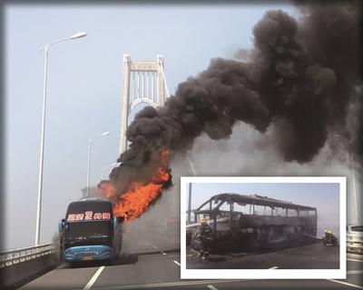 南京高速一大客車昨自燃 所幸無人傷亡