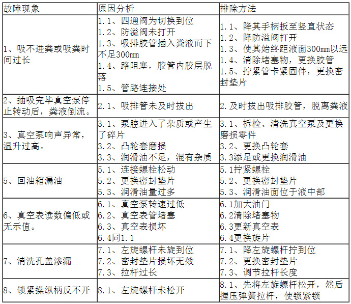 吸糞車故障現(xiàn)象 原因分析 排除方法