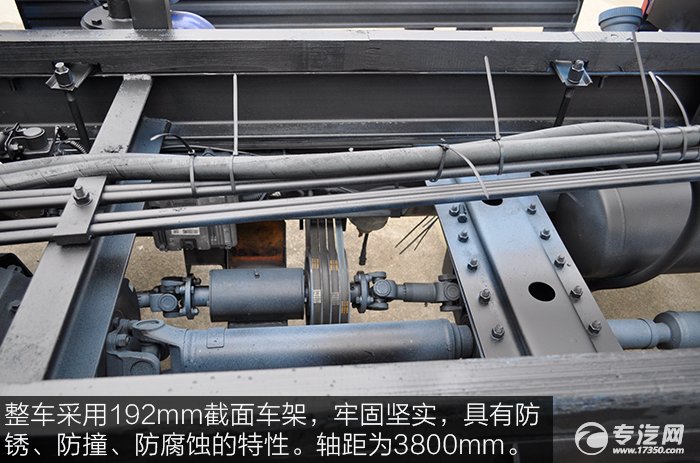 整車(chē)采用192mm截面車(chē)架,牢固堅(jiān)實(shí),具有防銹、防撞、防腐蝕的特性。軸距為3800mm,底盤(pán)傳動(dòng)軸采用合金鋼材質(zhì),制造技術(shù)成熟,堅(jiān)硬耐磨又防腐。