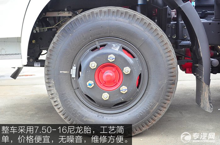 整車(chē)采用7.50-16尼龍?zhí)ィに嚭?jiǎn)單,價(jià)格便宜,無(wú)噪音,維修方便。