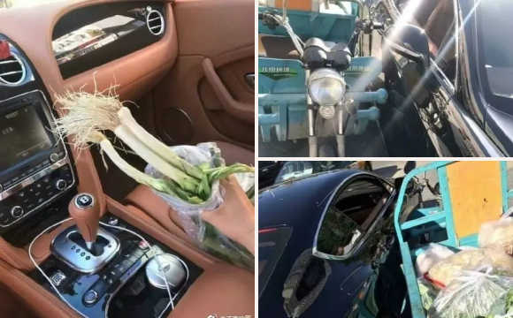 但是,劇情的翻轉(zhuǎn)總在不經(jīng)意間。近日濟(jì)南交警發(fā)布一條消息,寫到:“近日,賓利車主被一大爺騎三輪車撞了,大爺說(shuō)不好意思,自己殘疾腿腳不好,于是善良的小伙說(shuō)算了吧,也不是故意的。小伙剛要開(kāi)車走,大爺覺(jué)得還是要賠償些,便從車窗扔進(jìn)來(lái)一袋蔥(韭蔥,又稱洋蒜苗)?!边€配發(fā)了三張現(xiàn)場(chǎng)圖。