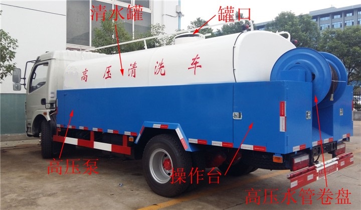 高壓清洗車,也稱之為管道疏通車,通過高壓水流產(chǎn)生的強大壓力沖開被堵塞的管道。主要組成部分為罐體、高壓泵。高壓清洗車主要用于清洗城市下水道、管道的沉積物、死角泥溝的疏通,也可用于清洗工業(yè)排液管道、壁面等,清洗公路、廣場地面。