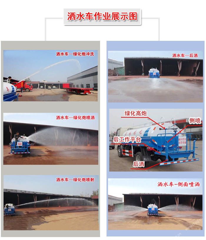 我廠(chǎng)生產(chǎn)的灑水車(chē)均為多功能綠化噴灑車(chē),可滿(mǎn)足不同用戶(hù)在不同的使用環(huán)境中使用。所有灑水車(chē)同時(shí)具有運(yùn)水功能,灑水泵可起到吸水和加壓排水功能,也可不通過(guò)泵自排水。灑水車(chē)也可做噴藥車(chē)使用。