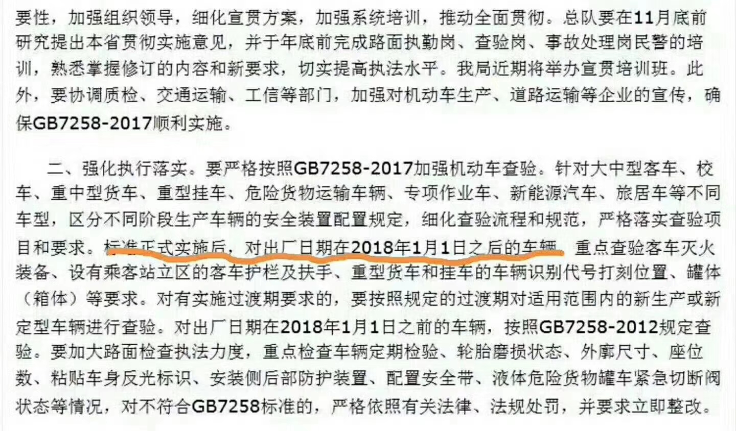 文中劃線部分可以看出,主要是對生產(chǎn)的要求也就是說新車的整車出廠日期(一般也就是合格證的日期)應(yīng)該在2018年1月1日以前。