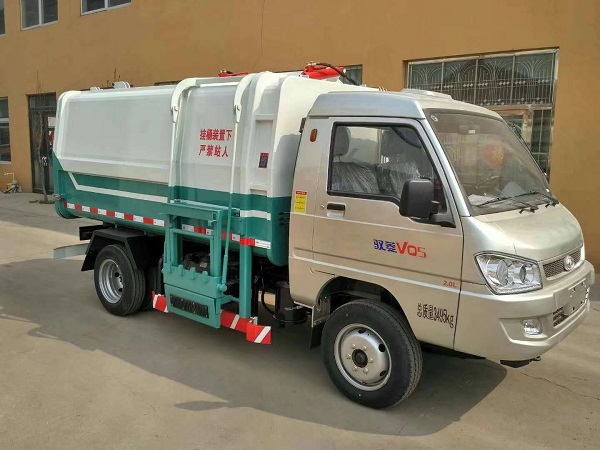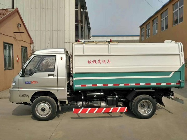 掛桶式垃圾車是垃圾車中的一個(gè)重要分支。主要組成結(jié)構(gòu)是自卸式箱體帶有掛桶提升機(jī),可以方便的自裝卸120L/240L等不同規(guī)格的標(biāo)準(zhǔn)垃圾桶。小型的藍(lán)牌掛桶式垃圾車(自裝卸式垃圾車)容積3立方左右,高度2米以內(nèi),適合下地下室收集轉(zhuǎn)運(yùn)生活垃圾。但是優(yōu)于汽油車所配變速箱一般較小,大多不帶取力器接口,很多時(shí)候制作掛桶式垃圾車的時(shí)候,液壓系統(tǒng)取力都是用電磁取力器取力,然后用皮帶驅(qū)動(dòng)液壓泵工作。正常情況下尤其是南方地區(qū)工作都沒有問題,在北方尤其是極寒地區(qū),橡膠制作的皮帶會(huì)在低溫環(huán)境下變脆,長時(shí)間工作后會(huì)疲勞,容易斷裂,影響生產(chǎn)。針對(duì)這一情況,垃圾車廠家和底盤上家合作,推出了幾款帶有取力器接口的小型掛桶式垃圾車底盤。今天給大家介紹的是福田馭菱汽油后雙輪掛桶式垃圾車。
