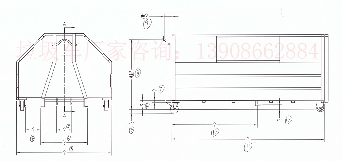定制勾臂式垃圾車或勾臂式垃圾車廂時的關(guān)鍵尺寸