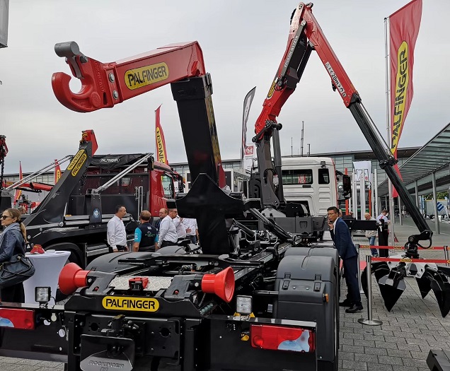 帕爾菲格的大型勾臂式垃圾車特別吸引了湖北帝成環(huán)衛(wèi)科技有限公司王總的視線: