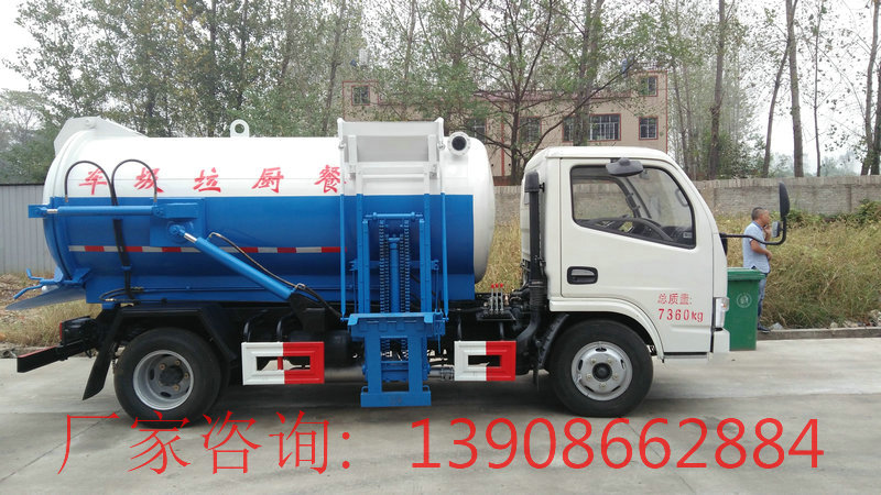 餐廚垃圾車,餐廚垃圾車是垃圾車中的一種,是用于收集和運輸生活垃圾、食品垃圾(泔水)及城市淤泥的專用車輛。具有裝、卸垃圾自動化程度高、密封性好、操作簡便、無污水泄露和異味的散發(fā)等特點。餐廚垃圾車又稱餐余垃圾車余廚垃圾車或者泔水車,餐廚垃圾車是指裝備有密封裝置和清洗體系等,用于餐廚廢物的搜集和運送的特種結(jié)構(gòu)專用作業(yè)車;也稱餐余廢物車或泔水車;是廢物車?yán)嚨囊环N。