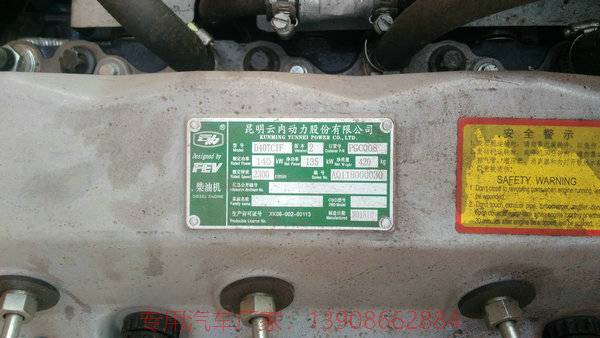 讓人吃驚的是該款東風國六藍牌平板運輸車搭配了云內(nèi)動力 D40TCIF型國六柴油發(fā)動機,標識功率為140KW(190馬力);可謂是刷新了藍牌平板運輸車的馬力的新紀錄。通過查詢得知,該款國六發(fā)動機為4102X120mm缸徑,直列四缸四氣門,電控共軌系統(tǒng)HEGR+DOC+DPF+SCR+ASC加持得到國六排放標準。