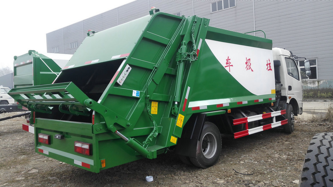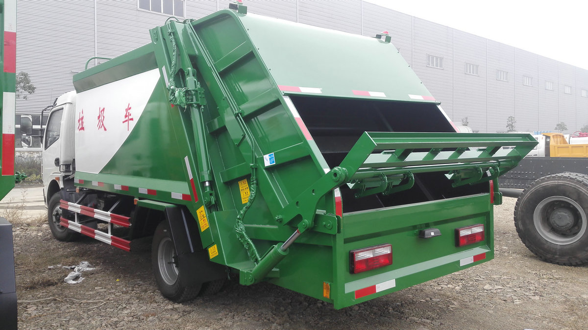 壓縮式垃圾車由汽車底盤、垃圾箱、推板、填裝器、液壓系統(tǒng)等組成,垃圾箱采用5MM厚優(yōu)質(zhì)碳鋼板制成,通過填裝器和推鏟等裝置將垃圾倒入、壓碎、壓扁,并將垃圾擠入車廂并壓實和推卸,污水全部進入填裝器底部污水廂,避免輛垃圾運輸過程中的二次污染。用戶可根據(jù)需求自行選擇裝配后掛桶翻轉(zhuǎn)機構(gòu)或垃圾斗翻轉(zhuǎn)機構(gòu)兩種翻轉(zhuǎn)機構(gòu)。該車具有自動反復(fù)壓縮以及蠕動壓縮功能,壓縮比高、密封性好、裝載量大﹑操作方便、環(huán)保性好﹑整車?yán)霉β矢叩葍?yōu)點,廣泛用于市政環(huán)衛(wèi)、大型廠礦、小區(qū)內(nèi)運輸各種垃圾。