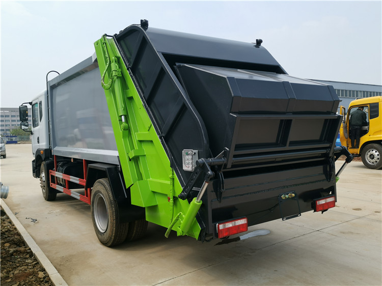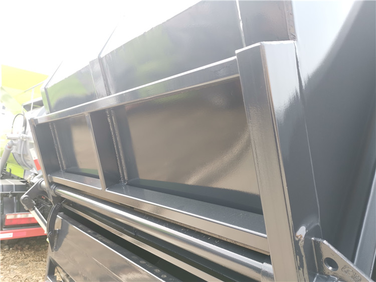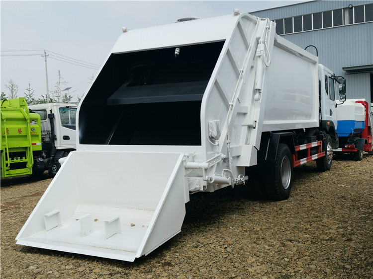 采用武鋼Q345高級(jí)耐磨鋼板一次性沖壓成型制作弧形箱體,邊4mm底5mm,垃圾箱體內(nèi)帶卸料前推板,填裝器帶滑板和垃圾刮板(可有效的將填裝器內(nèi)的垃圾刮入垃圾箱體內(nèi)),垃圾箱體前后帶污水箱(可有效防止污水泄漏,防止二次污染)和手電操作系統(tǒng)(方便操控,一個(gè)即可實(shí)現(xiàn)垃圾的裝載和卸料),駕駛室?guī)LC一鍵操控(可選臺(tái)灣永宏或西門子),定制型液壓油缸(可選海戰(zhàn)力、煙臺(tái)未來、江蘇騰達(dá)或廈門銀華油缸),揚(yáng)州中梅多路閥(可選意大利海德),合肥長(zhǎng)源液壓油泵,垃圾上料裝置為翻轉(zhuǎn)架,可同時(shí)掛2個(gè)240L國(guó)標(biāo)垃圾桶(也可選擇半密封三角斗或全密封斗)