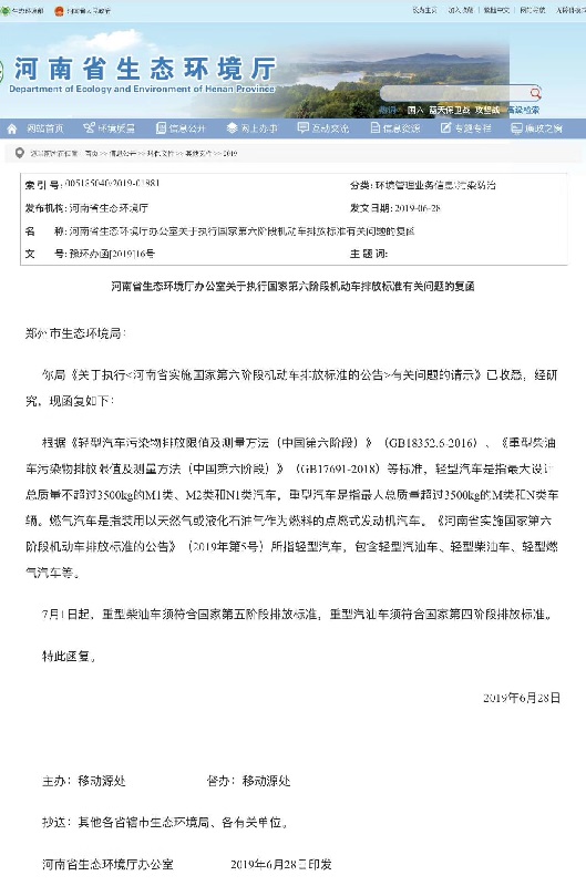 河南省的文件指出國六的實(shí)施針對輕型汽油車,和重型燃?xì)廛?。柴油車沒有包含在國六實(shí)施范圍內(nèi)。這是不是意味著河南地區(qū)的重型柴油國五車還可以正常生產(chǎn)銷售和上牌?