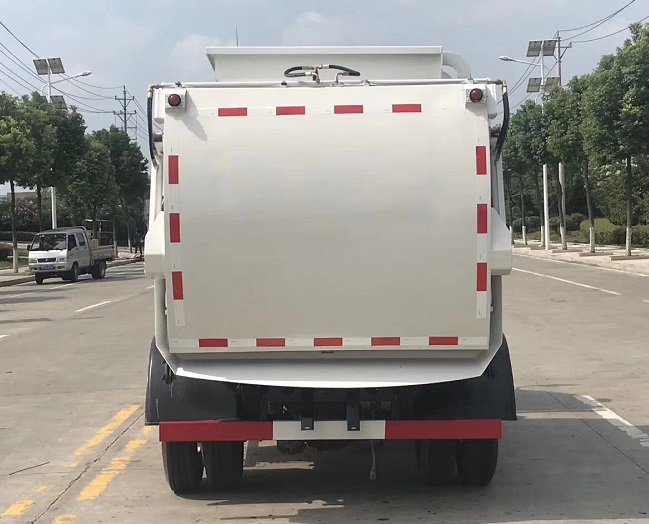 新式餐廚垃圾車尾部裙邊設計,卸料集中,不飛濺散落,不宜臟地臟人。