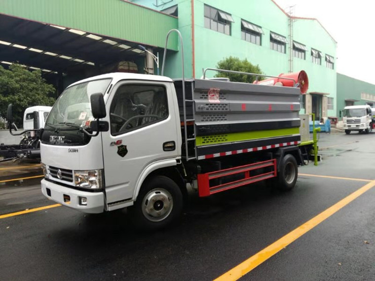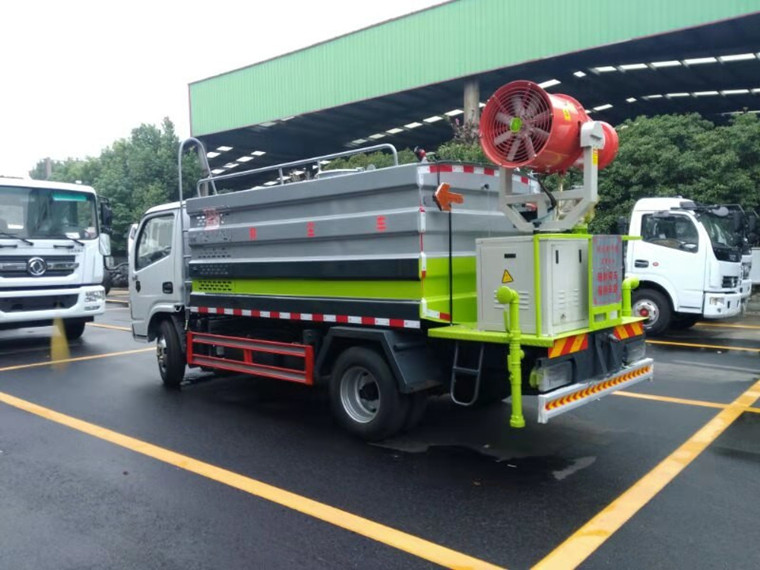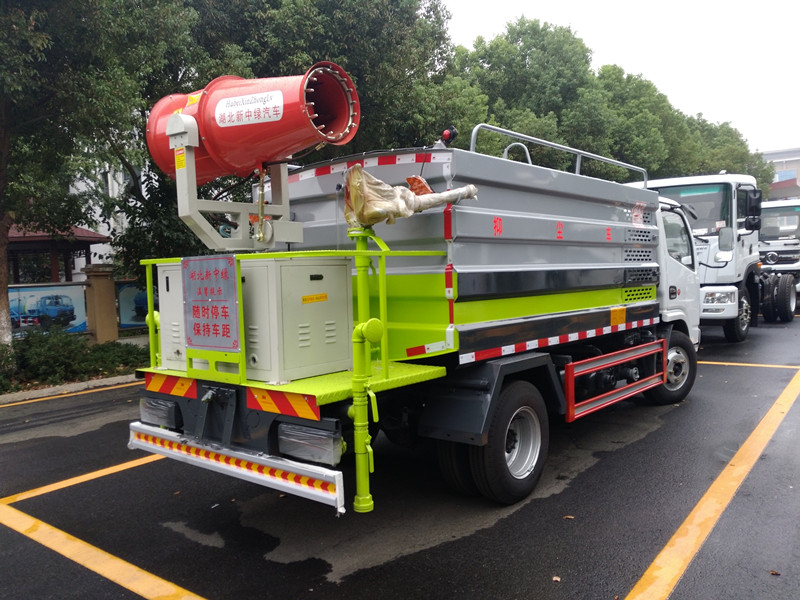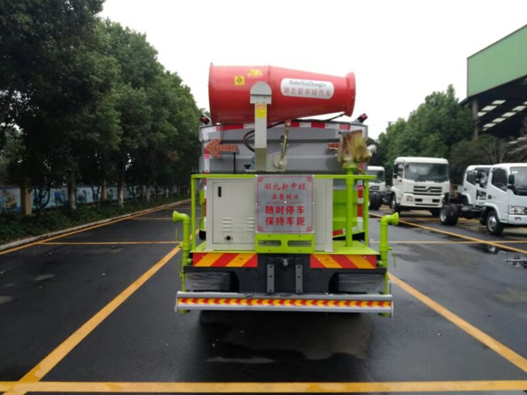具備灑水車的全套功能,箱體前面裝發(fā)動(dòng)機(jī),后面平臺上面裝噴霧機(jī)。既能灑水又能噴霧,一車多用。