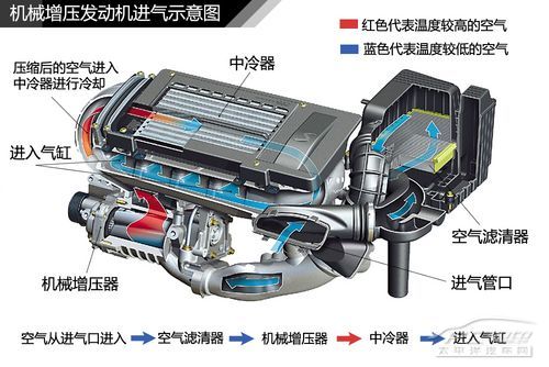 雙增壓發(fā)動機(jī)示意圖(渦輪增壓器+機(jī)械增壓器)