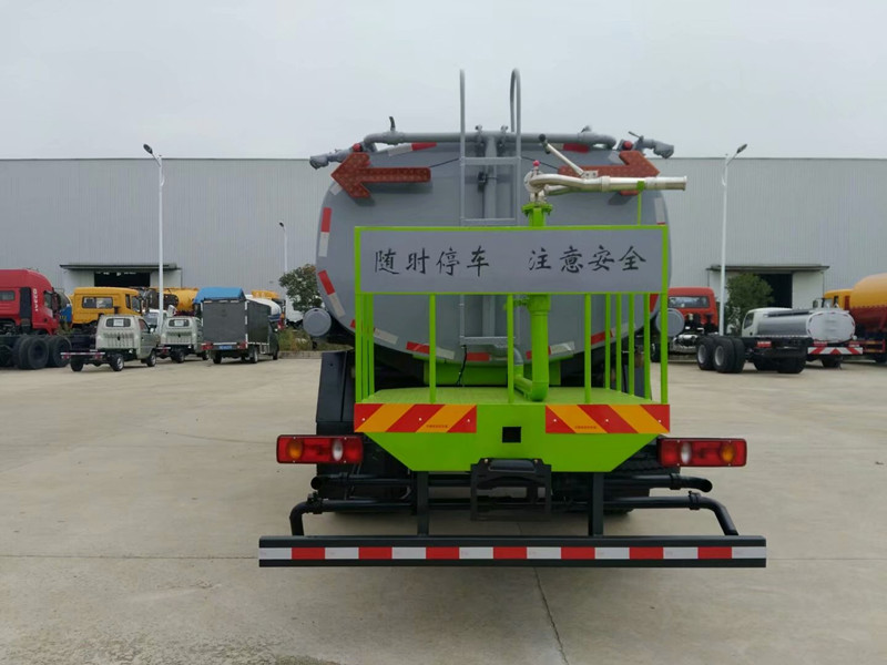 上裝配置:罐體采用4mm厚武鋼產(chǎn)專用容積板制作,罐體容積12立方米,罐體內(nèi)采用先進(jìn)的對(duì)接焊技術(shù),罐體焊后采用噴丸漏檢測(cè),使罐體具有強(qiáng)度高、重心穩(wěn),車輛運(yùn)載安全平衡等特點(diǎn)。配備全國(guó)質(zhì)量評(píng)比第一名的杭州威龍大功率專用自吸自排灑水泵。前(噴)后灑,帶側(cè)噴,后置工作平臺(tái),平臺(tái)上安裝綠化灑水高壓炮(炮噴射形狀可調(diào)成直沖狀、大雨、中雨、毛毛雨、炮可360度旋轉(zhuǎn),射程>35米)。帶自流閥,消防接口。帶自吸泵,可將池塘的水直接吸入罐體內(nèi)也可直接從城市街道消防栓上連接注水,吸入罐體內(nèi)。灑水車也可做噴藥車使用,可根椐用戶要求進(jìn)專業(yè)噴藥防腐處理,也可做企業(yè)單位運(yùn)水用,緊急時(shí)可做消防車使用。對(duì)灑水車有特殊要求的用戶請(qǐng)?zhí)崆案嬷?,可為用戶提供加裝各種附件,管道及多個(gè)噴頭。