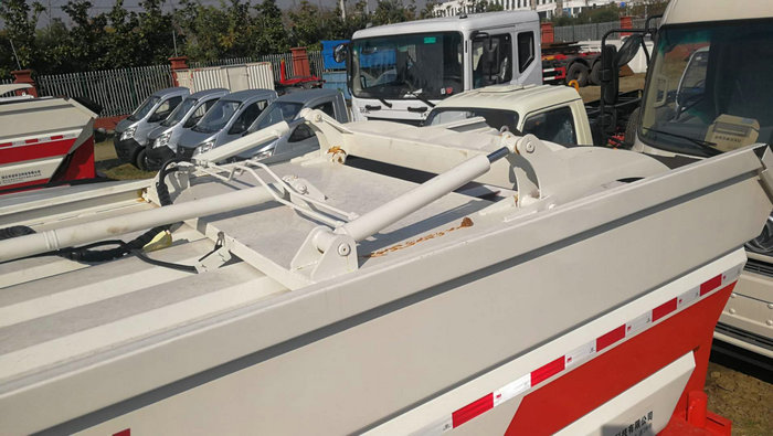 車(chē)頂刮板油缸伸縮,將箱內(nèi)垃圾從上往下壓縮推擠。