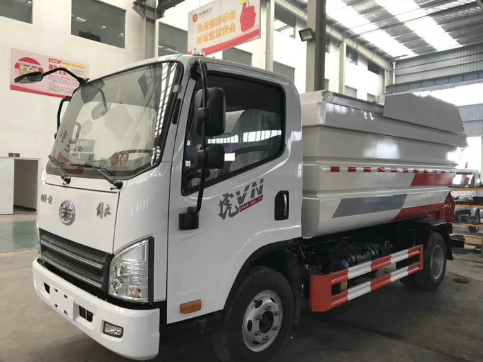 對(duì)于前端的垃圾收集轉(zhuǎn)運(yùn),也必須配合垃圾分類(lèi)處理的大趨勢(shì)。所以垃圾車(chē)也必須要適應(yīng)不同垃圾的特性。針對(duì)廚余垃圾或者其他含水率較高、容易滴漏撒漏的一類(lèi)垃圾,垃圾車(chē)廠家專(zhuān)門(mén)設(shè)計(jì)推出了一款全密封無(wú)泄漏的垃圾車(chē)。該車(chē)采用后高位掛桶翻轉(zhuǎn)的裝料機(jī)構(gòu),箱體為船型斗,全部密封焊接,并可根據(jù)要求選裝防腐涂層。船型斗高位翻轉(zhuǎn),不需要傳統(tǒng)垃圾車(chē)?yán)涞暮笊w或者后門(mén)密封條,完全不存在泄漏。垃圾卸料傾倒時(shí)整個(gè)垃圾箱也是整體舉升高位翻轉(zhuǎn)。整個(gè)垃圾收集和轉(zhuǎn)運(yùn),傾倒的過(guò)程全程無(wú)泄漏。