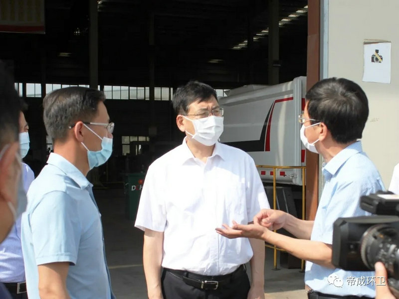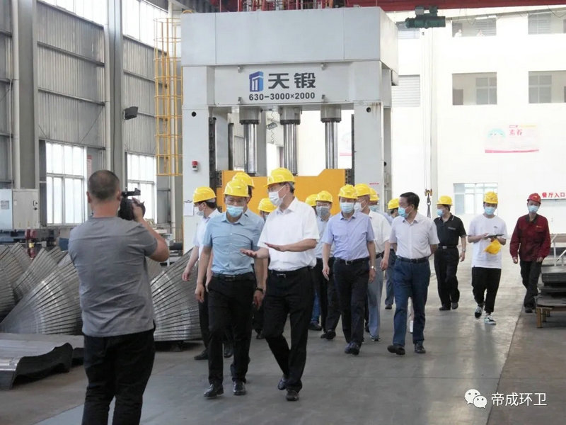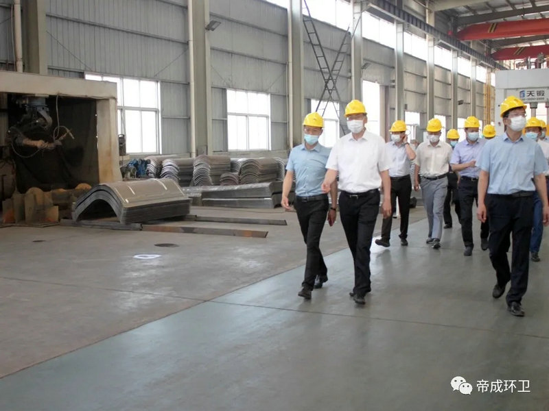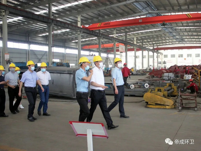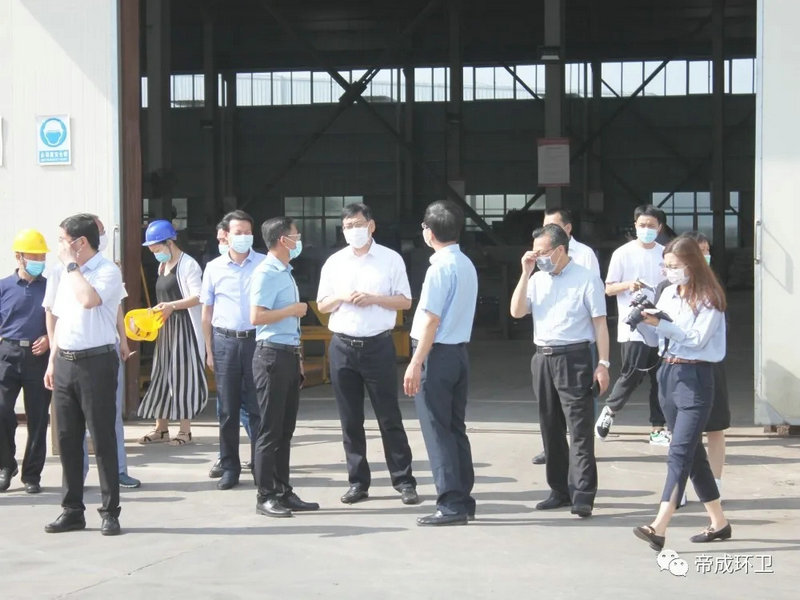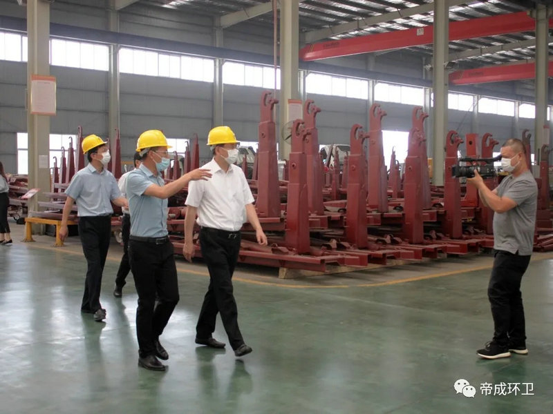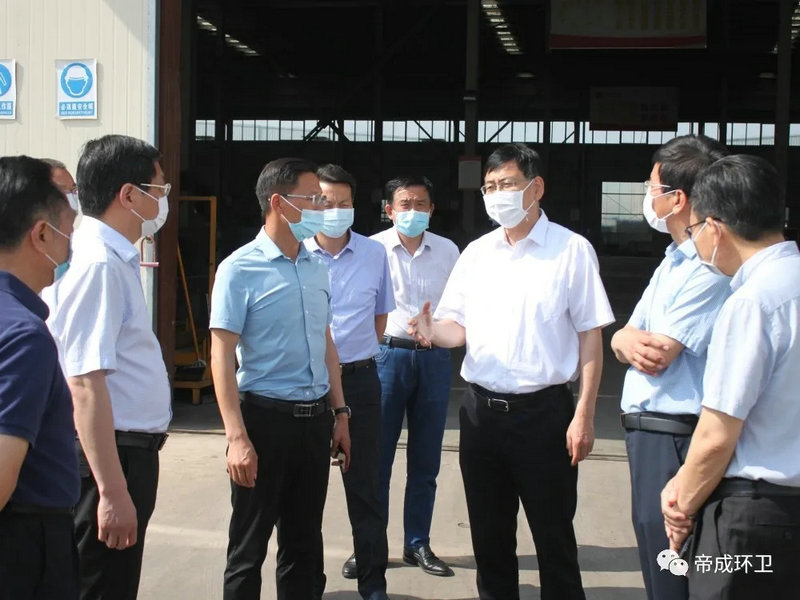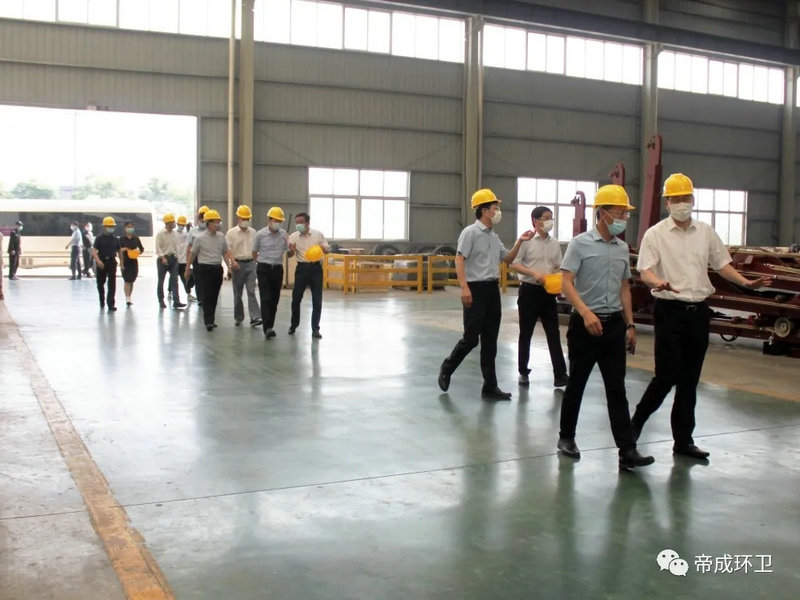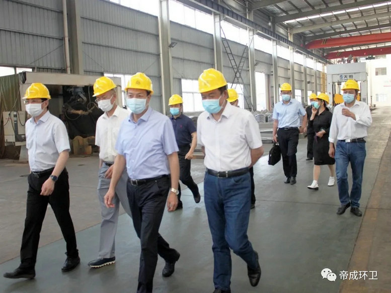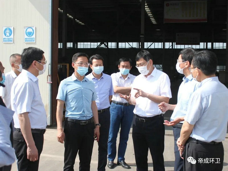 2020年5月26日上午9點,隨州市市委書記陳瑞峰、市領導林常倫、劉宏業(yè),在市發(fā)改委、市經(jīng)信局、市政務服務和大數(shù)據(jù)局主要負責同志的陪同下蒞臨湖北帝成環(huán)衛(wèi)科技有限公司參觀察,調(diào)研全市優(yōu)化營商環(huán)境工作及疫后復工復產(chǎn)工作情況。